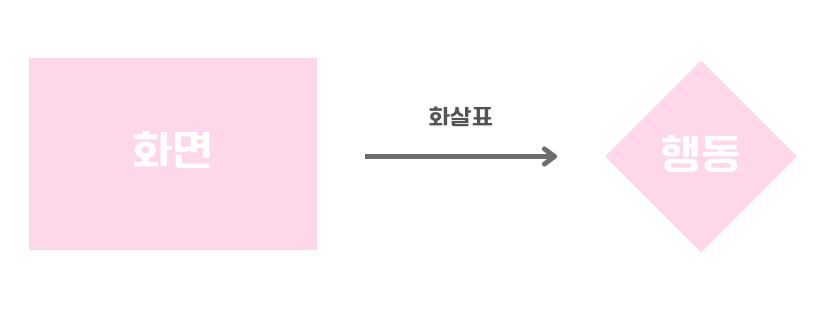 - 화살표 : 직사각형(화면)과 다이아몬드(행동)를 연결시켜주는 화살표