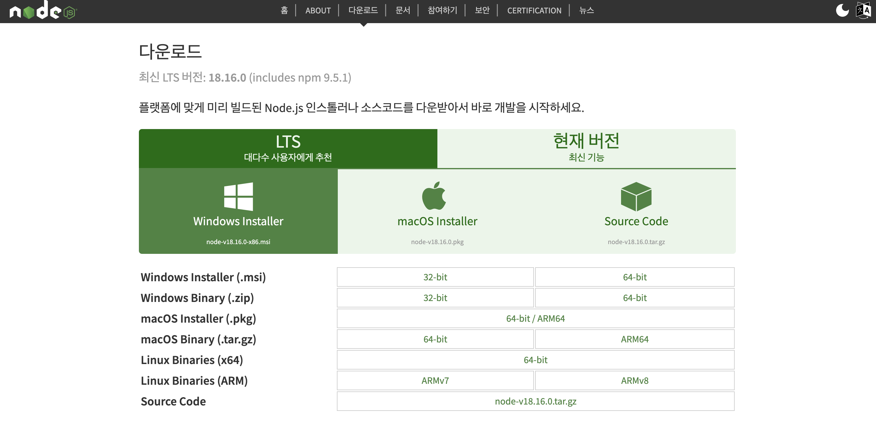 https://nodejs.org/ko/download
